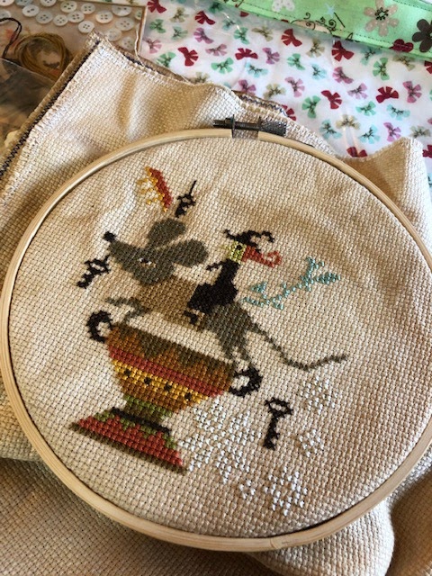 Well, I've been busy with Stitchmaynia and a little late on posting my progress. I started 6 new projects and now I'm going to revisit some of my WIPs from last year. Today I'll be stitching "When Witches Go Riding" by the Prairie Schooler.